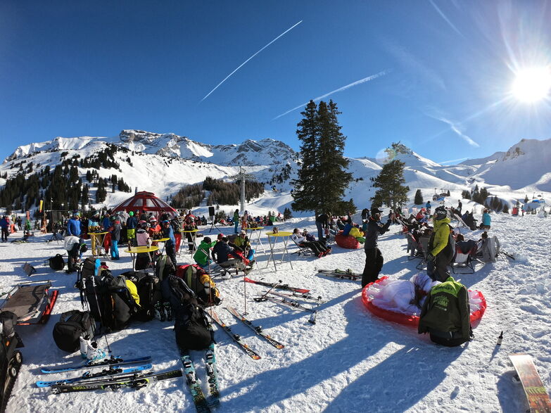 - Ohne Ski: Sillerenbahn, im Bergläger aussteigen, dann mit Bus bis Geils und dann entweder mit dem Lavey Lift hoch und um 11 Uhr Landung fürs Briefing bei der Wunderbar – oder von Geils 5 MInuten zu Fuss zur Wunderbar.